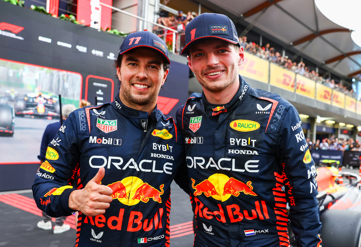 Sergio Pérez won the 2023 Formula 1 Azerbaijan Grand Prix to add to his Sprint race victory and cut the 2023 FIA Formula One World Championship drivers’ title gap to six points from Oracle Red Bull Racing teammate Max Verstappen, who completed a memorable 1-2 on the street circuit.