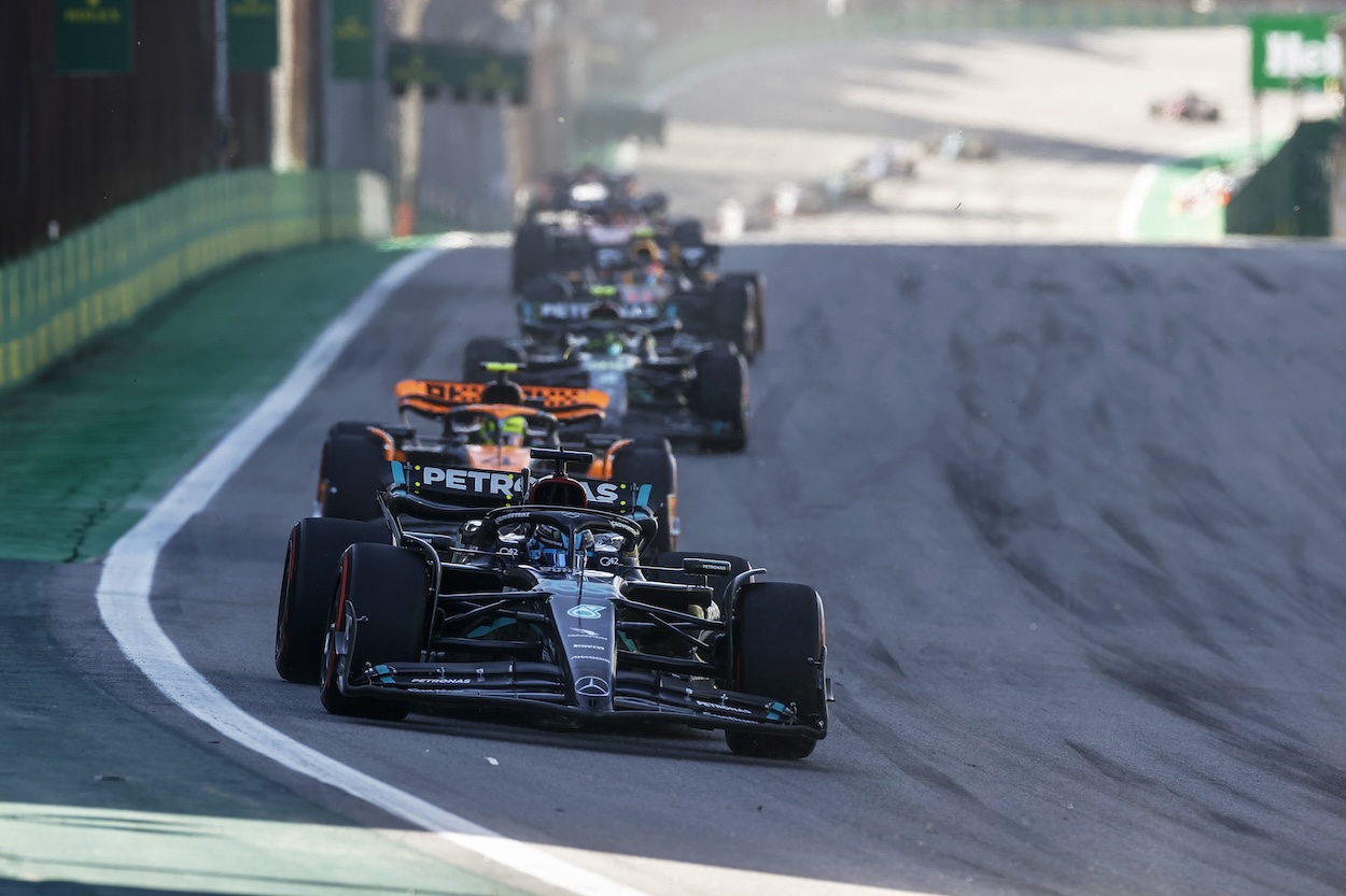 Lewis Hamilton finished eighth, whilst George Russell was forced to retire from Sunday’s São Paulo Grand Prix at Interlagos. Lining up P5 and P8, both Lewis and George made strong starts, Lewis vaulting into P3 and George P6 before the red flag flew for a first corner incident.