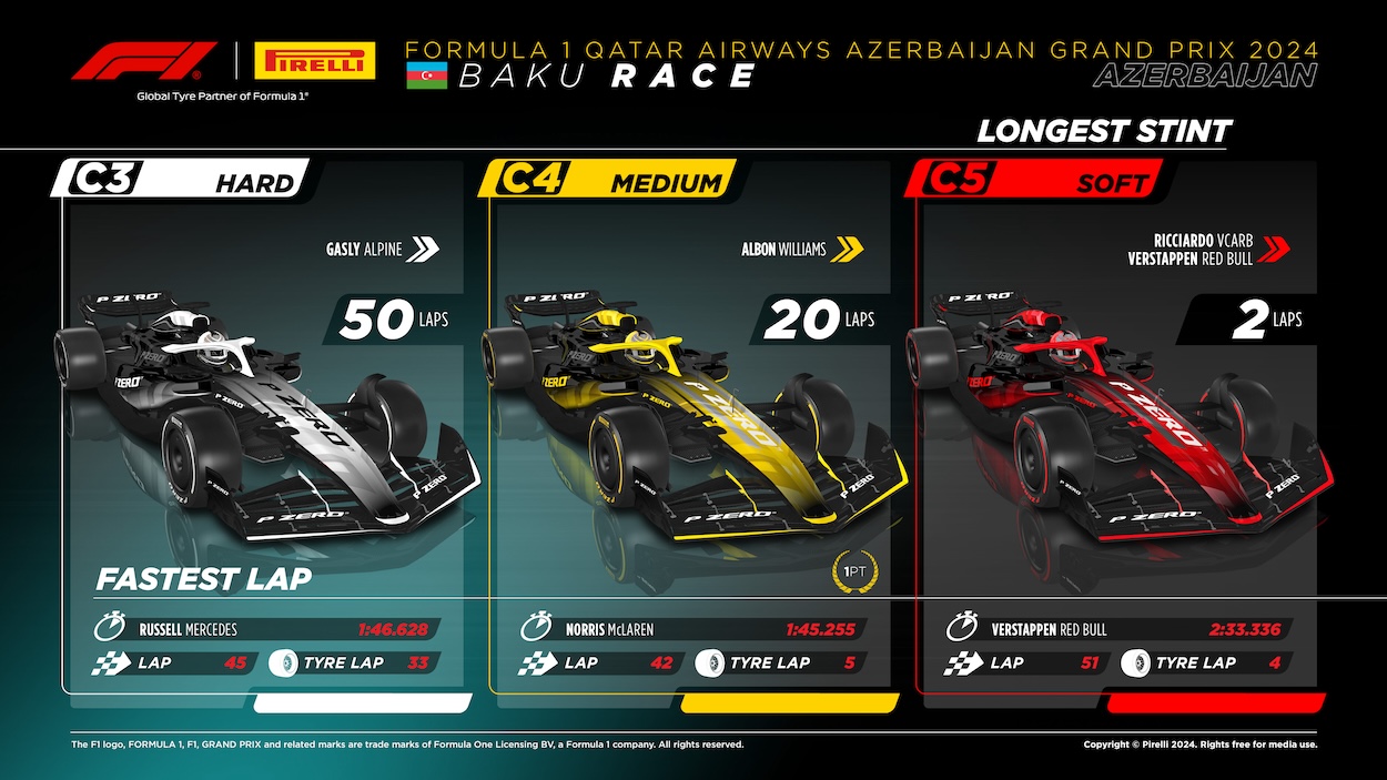 As expected, the race evolved linearly with two compounds, the Medium and Hard, playing their part. The Softs were not used at all. 17 drivers out of 20 chose to start on the C4, with just Hamilton, Bottas and Magnussen preferring the C3. Six drivers pitted twice, but in Piastri’s case, that was because he had to come in to change the damaged front wing after an incident with Hamilton. At the same time, the other five (Gasly, Zhou, Lawson, Hulkenberg and Magnussen) chose this route as the drop in performance from their tyres was too high in the first stint.