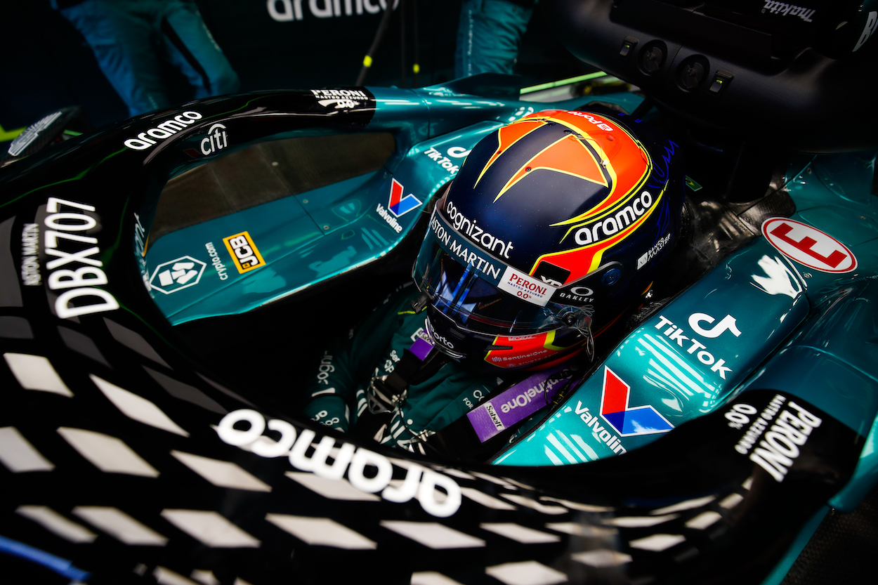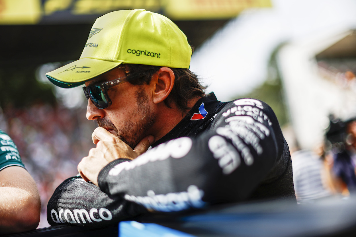 Fernando Alonso, Aston Martin F1 Team, on the grid