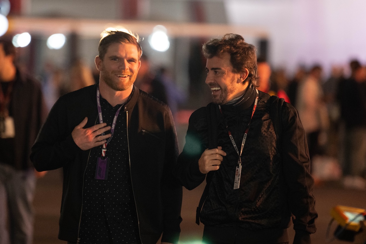 Fernando Alonso, Aston Martin F1 Team, with Conor Daly, IndyCar driver
