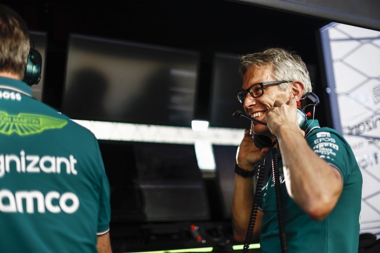 Mike Krack, Team Principal, Aston Martin F1 Team, on the pit wall