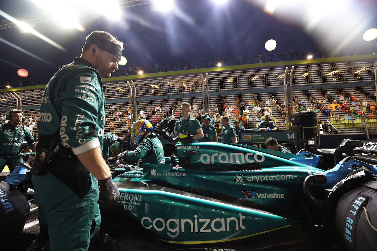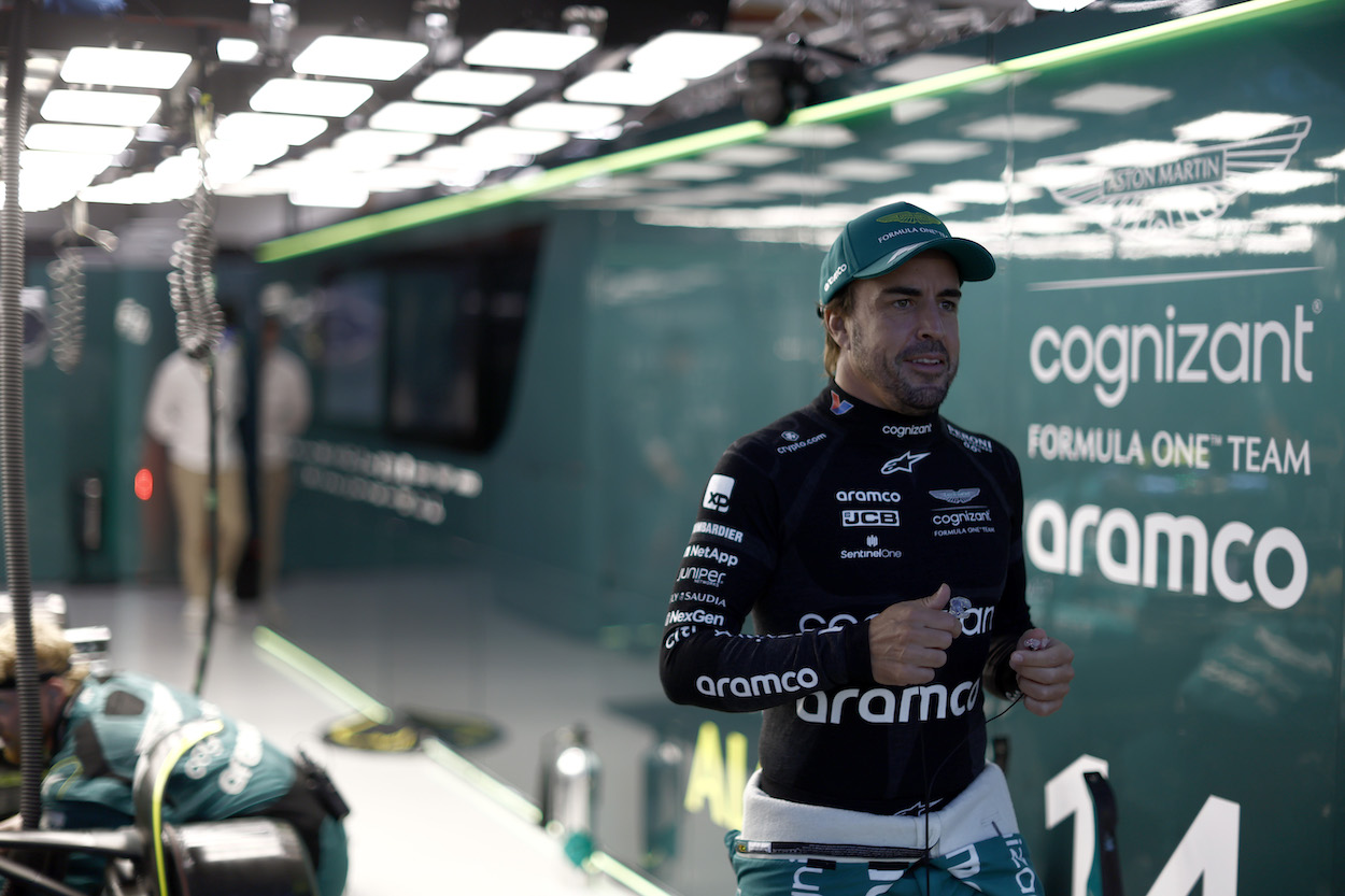 Fernando Alonso, Aston Martin F1 Team, on the grid