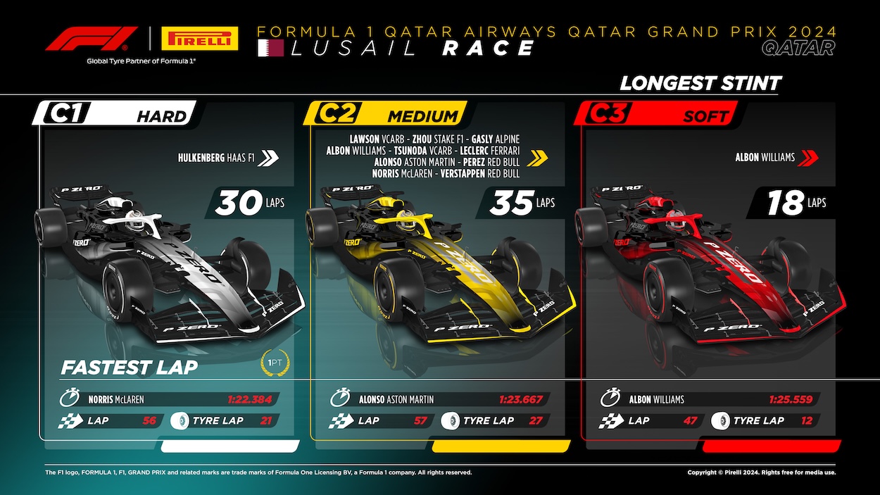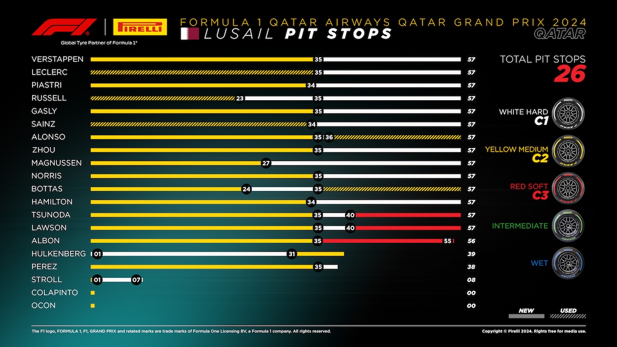 The Safety Car made three appearances. At the last two, the chance to pit costing less time induced Williams and Racing Bulls to gamble on the Soft, but it did not pay off, as the characteristics of this track meant the C3 proved to have too much of a drop in performance.